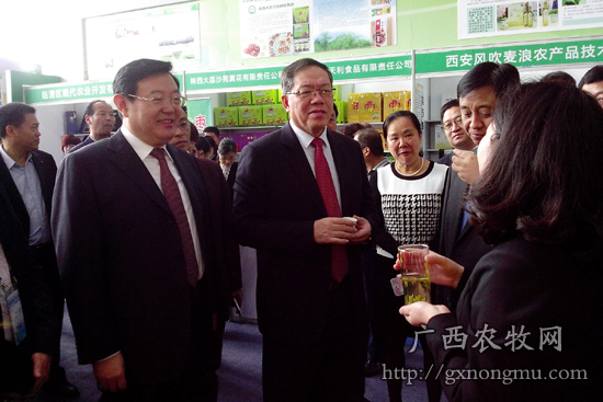 领导巡展(左一为陕西省人民政府副省长李金柱,左二为广西区政府副主席陈刚)