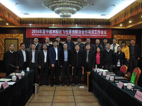 会上中越双方报告了2014年水稻迁飞性害虫与病毒病发生情况和项目执行情况,交流了两国水稻迁飞性病虫发生情况与形势、害虫迁飞规律研究和佳多自动虫情测报灯的使用维护。双方均表示,在项目实施后取得了明显成效,充分肯定了项目专家互访、技术培训和病虫信息交流机制的重要作用。双方讨论了下一步的工作重点和发展方向,希望在已经建立的良好平台和合作基础上,加大合作力度、扩大合作领域,为实现区域性联防联控和可持续治理“两迁”害虫、保障粮食增产丰收发挥更大的作用。