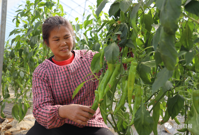 农业大棚排成排,果蔬飘香生意旺。2月13日,大年初二,贺州市平桂区羊头镇龙山村的现代设施农业大棚蔬菜产业园内,种植户虞树友已经忙起来,施有机肥、整理生产工具,一株株进入丰产期的辣椒让他喜上眉梢。