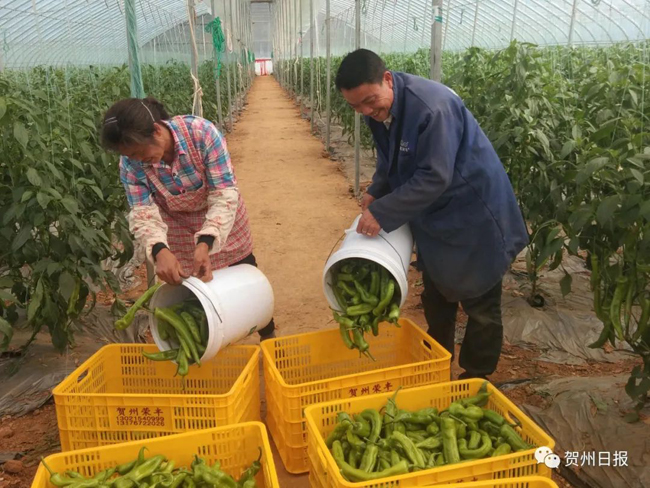 农业大棚排成排,果蔬飘香生意旺。2月13日,大年初二,贺州市平桂区羊头镇龙山村的现代设施农业大棚蔬菜产业园内,种植户虞树友已经忙起来,施有机肥、整理生产工具,一株株进入丰产期的辣椒让他喜上眉梢。