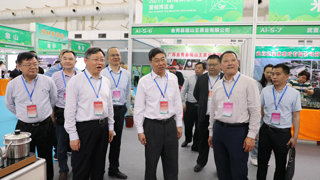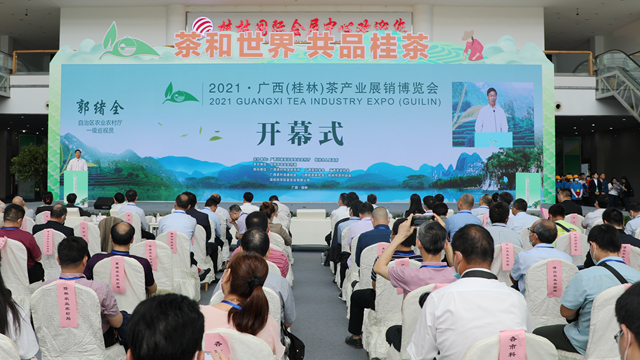 郭绪全在致辞中阐述,广西种茶历史悠久、生态环境优美、富硒资源特色明显,是全国主要茶叶产区之一。近年来,广西深入贯彻落实习近平总书记生态文明思想,持之以恒推进生态文明建设,擦亮山清水秀生态美的金字招牌,将茶产业作为绿色生态产业、特色优势产业、脱贫主导产业、乡村振兴产业。十三五期间,广西茶产业取得快速发展,茶园面积、茶叶产量从2015年的101.6万亩、6.3万吨增加到2020年的136.92万亩、8.83万吨,增幅分别达34.76%、40.16%,2020年广西茶产量和面积均步入全国前十名,综合产值达260亿元,涉茶企业数1300家,规上精制茶加工企业59家,茶农专业合作社数量711家,茶叶各类注册商标达500多个。茶产业作为广西的优势特色农业产业,在脱贫攻坚中发挥了重要作用,有效促进了边远山区、少数民族地区经济发展和农民增收。希望通过广西茶产业展销博览会,以茶结缘、以茶会友、以茶弘文、以茶兴业。广西将持续做优茶品质、做强茶品牌、拓展茶市场、分享茶红利,走出一条广西茶产业高质量发展的道路。