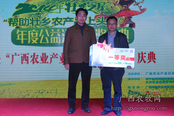据悉, “帮助壮乡农产品上头条”、“我为壮乡农特产品代言”公益活动已经成功举办了10期,均得到广西区内各企业家、政府部门的支持和积极参与。本届颁奖典礼由共评出了一个总冠军、两个亚军、三个季军,分别是柳州市柳江县绿之野生态科技有限公司潘野;灵山县龙润工贸易有限公司张龙芬、广西平乐莲花山生态产业园李红燕;桂林无花果家庭农产邓庆发、柳州市宏森生态林业有限公司梁青峰、广西山缘食品有限公司陈原。并评出了乔毅、马丽珍等10位2014年度 “壮乡之星”。
