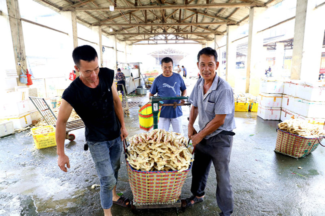“我们从湖南过来,在这里要待差不多2个月,每天收购1万斤发回湖南。三都这里的子姜比较出名,顾客比较喜欢。”一位来自湖南的收购商说。