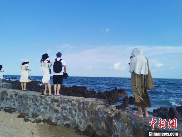 游客在防城港白沙湾游玩。