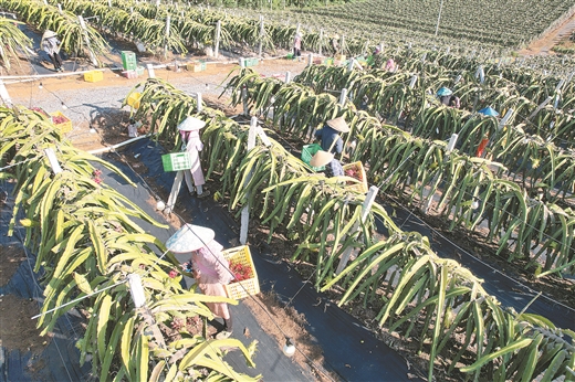 5500亩的红心火龙果种植基地蔚为壮观。