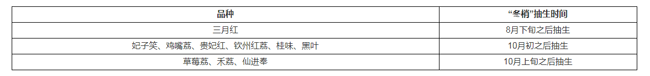 由于荔枝不同品种和种植地区不同,其适宜抽生期和适宜老熟期也不相同,因此冬梢抽生时间也不相同(见表1)。
