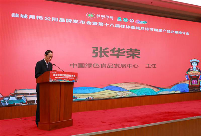 广西农牧绿色食品网讯 10月25日上午,由广西恭城瑶族自治县县委、县政府主办,恭城县农业农村局、县柿子产业协会和北京百年方圆营销策划有限公司承办的“恭城月柿公用品牌发布会暨第十八届桂林恭城月柿节明星产品北京推介会”在北京全国农业展览馆举办。发布会上,恭城月柿公用品牌新形象正式对外发布。