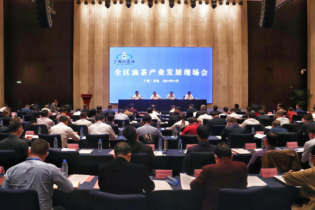 百色市副市长古俊彦,自治区有关部门相关负责人以及全区油茶产业发展重点市、县(区)政府分管领导、林业部门领导,有关行业协会、企业代表等130余名参加会议。