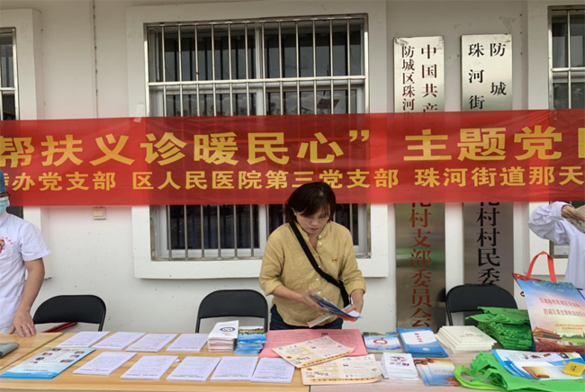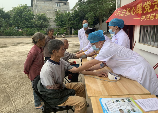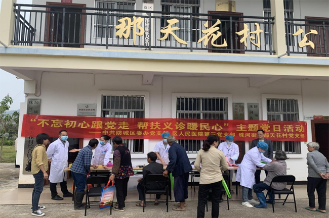 中共防城区委办党支部联合防城区人民医院行政第三支部、珠河街道那天花村党支部开展“不忘初心跟党走 帮扶义诊暖民心”主题党日活动,引导党员干部“学党史、悟思想、办实事、开新局”,进一步增强党员服务意识,充分发挥党员干部的先锋模范作用,用实际行动践行“一切为了人民健康”的初心使命,切实为群众解决就医看病中的实际困难。