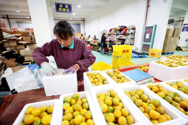 当前,作为我国金桔主要产地之一的广西融安县正值金桔上市季。电商园里,新鲜采收的金桔经过农残检测、分拣、包装后,即可装车运往全国各地。