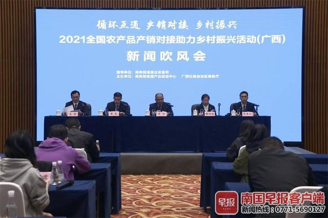 11月25日,2021全国农产品产销对接助力乡村振兴活动(广西)新闻吹风会在南宁举行。汇聚1000多种广西名特优产品的展销会将于12月3-5日在南宁国际会展中心举办。