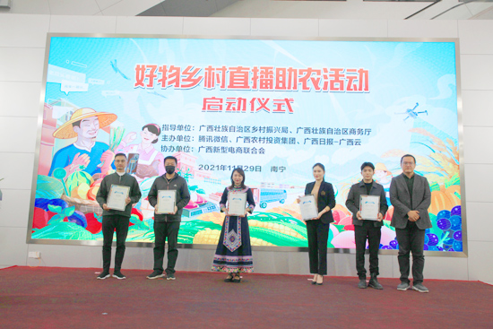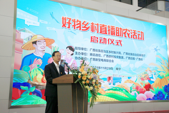 11月29日下午,由腾讯微信、广西农村投资集团、广西日报-广西云共同主办,广西新型电商联合会协办的“好物乡村直播助农”活动在广西消费帮扶馆正式启动。
