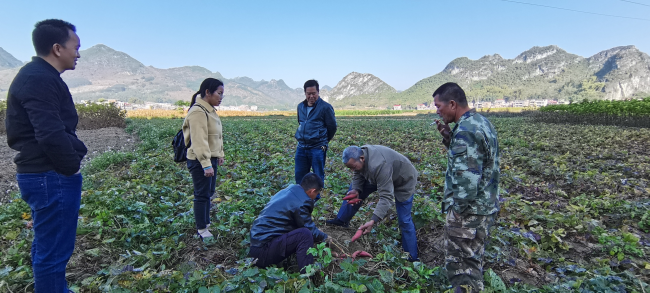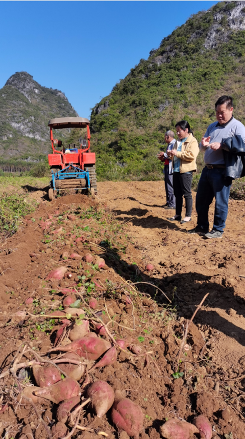为进一步掌握忻城县秋冬种情况,了解新型农业经营主体发展情况,2021年12月6日,忻城县农业农村局的种植业管理股、农业种植技术服务中心的技术人员到忻城县古蓬镇永久种养家庭农场的红薯种植基地了解红薯的收获情况。