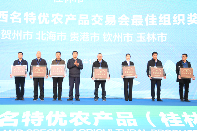黄智宇表示,本届交易会规模保持较高水平,参展产品3000多种,实现农林牧渔领域的全覆盖。突出打造“桂字号”农产品品牌,始终把提升拓展“广西好嘢”品牌建设作为交易会工作重点。首次设置了数字农业和地理标志农产品两个专题展区展示新成果。更加突出产销对接、有效订单,有效发挥促农增收作用。希望大家用好农产品交易会这个平台,加强宣传推介,深化交流合作,做好产销对接,努力在本届交易会上取得丰硕成果。