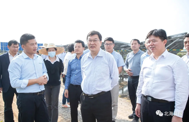会前,蔡锦军、黄卫平等领导到合浦县白沙镇万亩蔬菜种植基地虎塘片区、信义合浦白沙100MWp渔光互补光伏电站,调研农业项目生产经营情况。