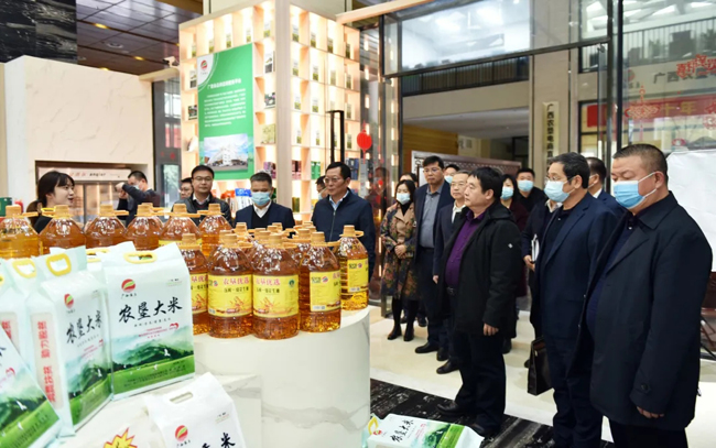 当天下午,“两院三所”领导班子首先参观了农垦优质产品展示展销中心。步入展示展销中心,琳琅满目的农垦特色产品及扶贫产品堆满了货架,令人目不暇接。大家饶有兴致地边走边看,听取现场工作人员讲解,不时和随行人员交谈,了解企业生产经营和展示展销情况,并品鉴了农垦特色产品。“这里的产品真是太丰富了,我们积极响应自治区打造现代一流食品企业号召,今年就在这里采购春节福利产品啦!”广西化工研究院党委书记、董事长、院长黄尚顺高兴地说。
