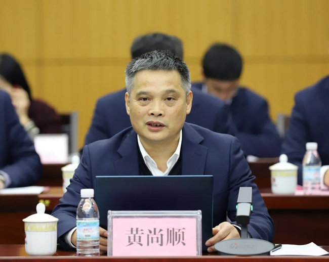 听取了广西化工院、广西轻工院的工作汇报后,农垦集团党委书记、董事长甘承会作了讲话。