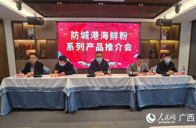 1月20日,广西防城港海鲜粉系列产品推介会在南宁举行。据介绍,从无到有,防城港海鲜粉品牌产业正在加速兴起,并迅速成为新晋“网红”,受到广大吃货们的喜爱。目前,该市已生产出“八只虾”“三只鲍鱼”“龙凤呈祥”等系列产品。