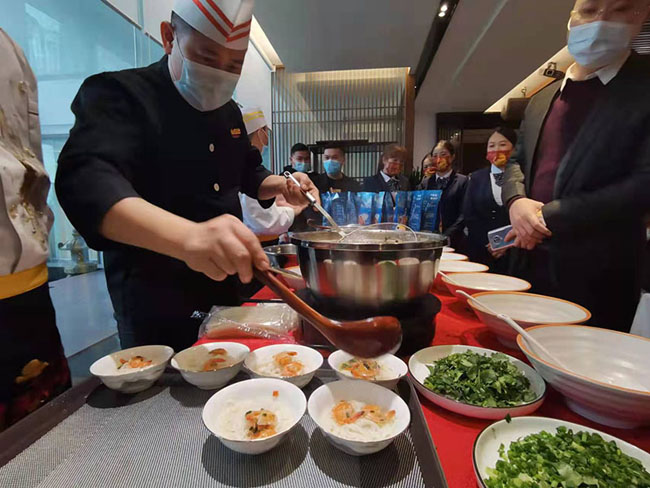 在防城港市政协的大力助推下,广西八只虾食品有限公司、防城港市广源农业开发有限公司创新传统海鲜烹饪技术,于2021年10月16日联合试产出第一碗袋装“防城港海鲜粉”,随后又获得了预包装(袋装)海鲜粉合法生产资格,挂牌营业了首家以“防城港海鲜粉”为命名的海鲜粉实体店,通过了广西食品安全地方标准立项。