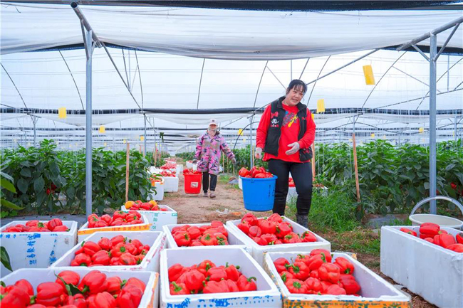 大棚彩椒种植属于比较高效的农业产业,比一般的农作务要高,合作种植彩椒,带动群众增收致富。现在正值彩椒丰收时期,彩椒的丰收,不仅填满了种植户的“钱袋子”,同时也为周边群众提供了就近务工岗位,实现了大棚有菜种、农民有事做、经济有收入的良好局面。