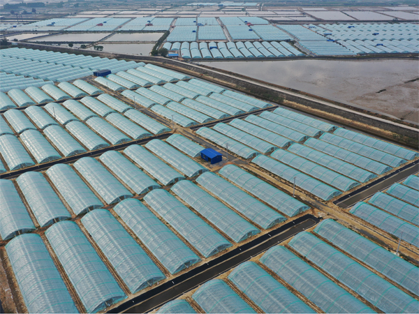 钦州晟农水产养殖有限公司犀牛脚镇沙角村委中三墩大棚对虾养殖基地全景鸟瞰图
