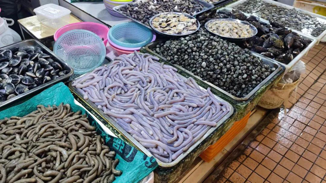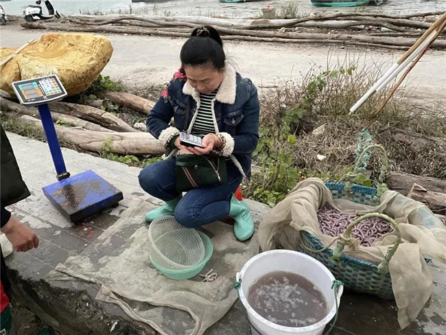 “今天的沙虫57块钱一斤,平常一天能收300斤左右沙虫,这几天天气不好,没有多少人去(挖沙虫),收到的沙虫也少。”在海边收沙虫的商家说道。