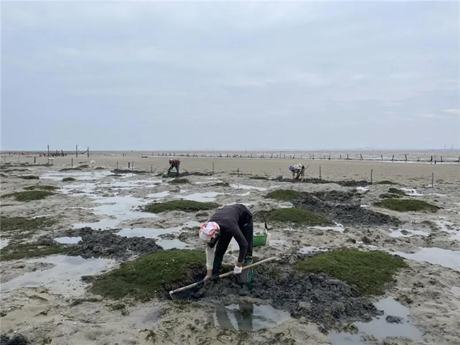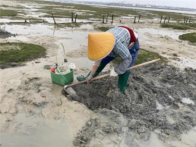 正所谓“靠山吃山,靠海吃海”,沙田镇的近海滩涂有许多大大小小的沙洲,随着潮涨潮落,沙虫、蛤蜊、车螺等大量的贝类海鲜留驻在这些沙洲上。
