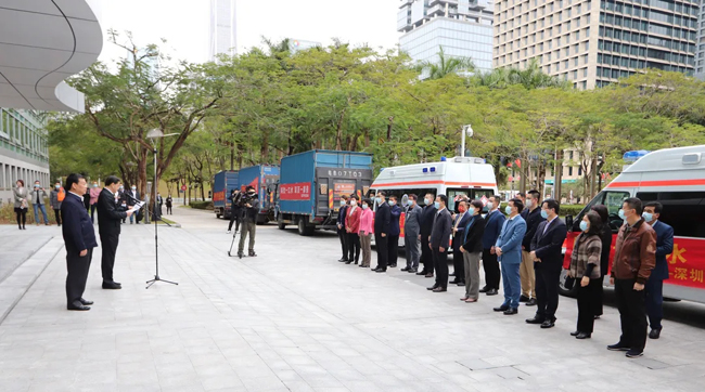 2月10日上午,深圳市在市民中心举行深圳支援广西百色防疫物资发车仪式,深圳市委常委、市政府常务副市长黄敏出席活动。随着黄敏的“发车”号令,活动现场的2辆负压救护车和5辆满载防疫物资的货车火速奔赴百色,其他物资也将通过空运等方式迅速送达当地,为打赢疫情防控阻击战歼灭战增添一份力量。