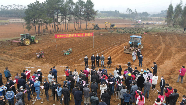 2月15日,来宾市忻城县2022年甘蔗春耕生产暨“清桉还蔗”工作现场推进会在红渡镇渡江村甘蔗种植基地举行,以实际行动贯彻落实中央、自治区、来宾市关于坚决制止耕地“非农化”、防止耕地“非粮化”的要求,确保糖料蔗生产保护区功能有效发挥。