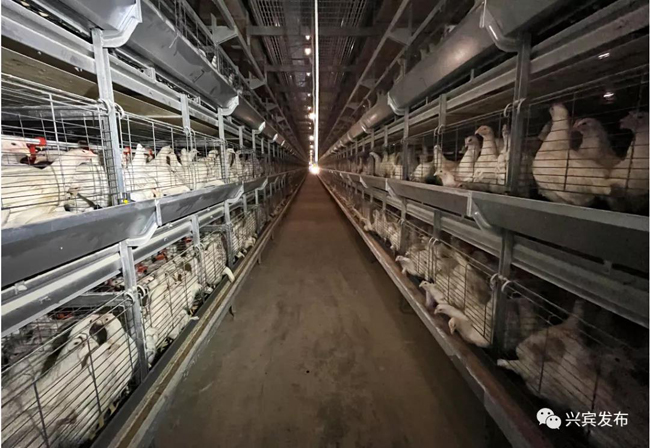 2月18日,笔者走进来宾市兴宾区三五镇榜山村的广西枋山农业科技有限责任公司青年鸡养殖基地,看到20万只青年鸡都住上了“楼房”,每层“楼”都有自动供水和添料设备。整个鸡舍的喂料、饮水、通风、温度、清粪等都实现自动化管控,保证鸡舍内空气流通,形成“人管机器,机器养鸡”的养殖模式。