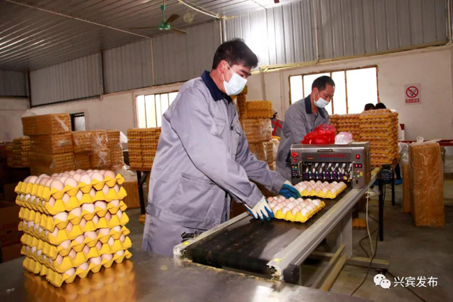 2019年,蛋鸡养殖基地按照国家健康养殖蛋鸡产业化示范基地标准进行投资建设,并与正大集团成功“牵手”。“正大集团为我们提供蛋鸡饲料、生产技术、销售服务等支持,第一批蛋鸡在2020年3月开始产蛋,当年产蛋量1600吨,年产值1600多万元。”覃兴欢说,有了硬件设施的保障,蛋鸡的生活十分“安逸”,产能也提高了不少。该基地去年的产蛋量增至2000吨,年产值达2000多万元,产蛋率稳定在97%左右。目前蛋鸡存栏量10万羽,日产蛋量约10万只。