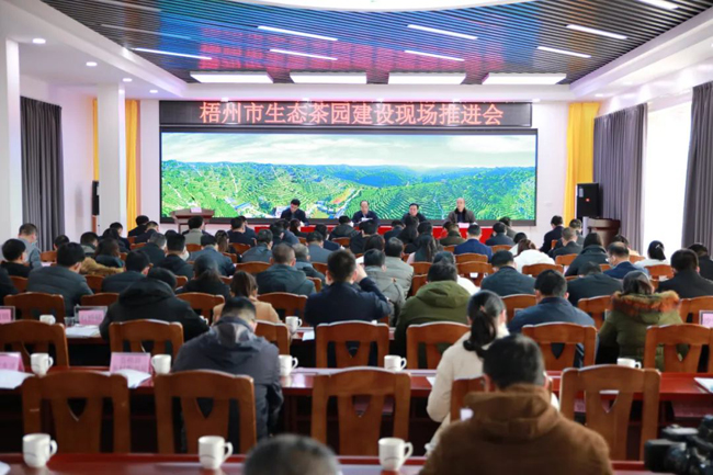 2月23日,全市生态茶园建设现场推进会在苍梧县召开。会议贯彻落实全市茶产业发展大会精神,交流经验做法,对下一阶段全市生态茶园建设工作进行再动员、再部署。市委书记蒋连生对全市生态茶园建设工作作出批示。市委副书记张惠强出席会议并讲话。