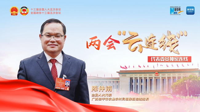 2022年全国两会期间,全国人大代表、广西桂平市农业农村局植保植检站站长陈仲南参与新华网独家连线时表示,建议通过实施自然村屯道路畅通工程、自然村屯道路提升工程和乡村道路安全生命防护工程,推动乡村振兴;希望加大推广农业新技术,真正做到“藏粮于地、藏粮于技”。