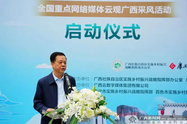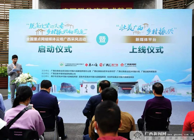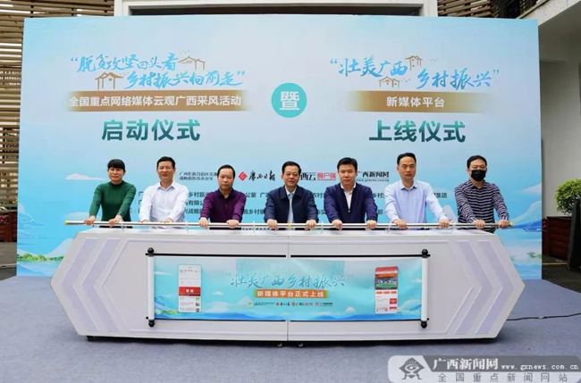 3月14日,由自治区实施乡村振兴战略指挥部办公室、自治区农业农村厅、自治区乡村振兴局与广西日报传媒集团联合主办,广西云数字媒体集团有限公司承办的“脱贫攻坚回头看 乡村振兴向前走”——全国重点网络媒体云观广西采风活动启动暨“壮美广西乡村振兴”新媒体平台上线仪式,在广西南宁举行。
