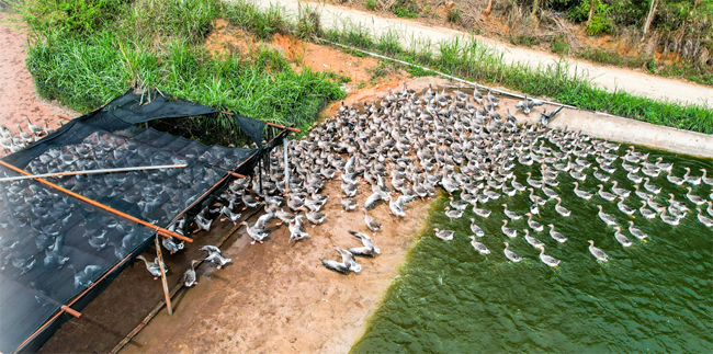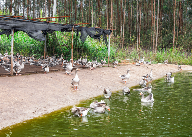 “传统养鹅大省江苏、山东每年5至10月气温长期高达30多度,天气太热鹅几乎不产蛋,而鹅蛋、鹅肉、鹅肝的市场需求量极大,供不应求。我们贵港得天独厚的气候环境恰好弥补这一空白,所以选择了反季节的种鹅养殖。”吴仲勇介绍说。