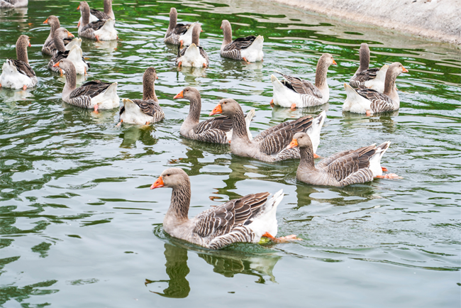 近日,小轩走进覃塘区石卡镇江南村的金祥养鹅专业合作社,只见水面微波荡漾倒影婆娑,成百上千只鹅憨态可掬、悠然自得地在水中畅游,享受着温暖的春光。
