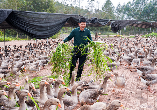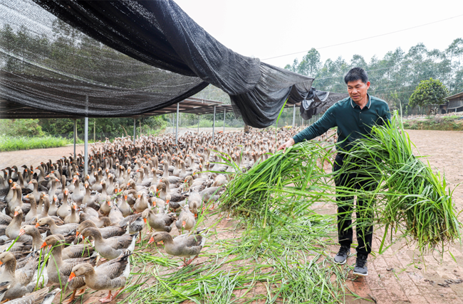 几年前,吴仲勇了解到养殖种鹅有很大的市场前景,结合该村地理优势和得天独厚的气候环境,便一边学习一边自己摸索发展反季节种鹅养殖,从几十羽到几百羽再到现在的4000多羽,吴仲勇养殖规模越来越大。