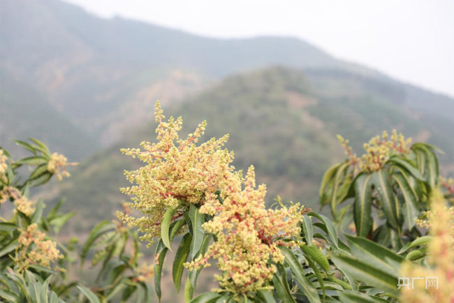 3月份正是芒果开花的季节,一串串米黄色的花朵摇曳在枝头,散发着独特的香味。