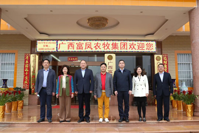 2022年3月29日,南宁市委统战部副部长张献辉、林拓一行莅临广西富凤农牧集团就产业富民及统战工作开展专项调研。