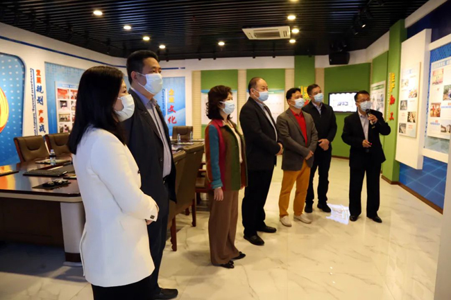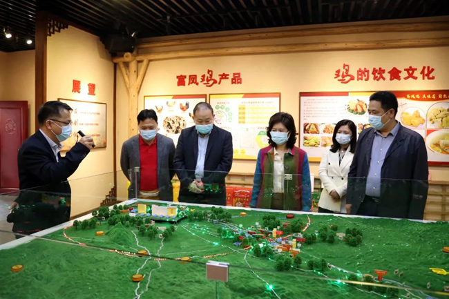 南宁市委统战部调研组一行在集团李非董事长的陪同下,参观富凤荣誉展厅、富凤鸡文化展示厅和产业展厅,并就富凤集团产业发展布局以及带动农户养殖增收致富等情况做详细汇报。