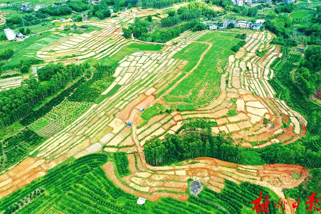 藤县太平镇健安村经过提质改造的耕地,俨然一块块调色板,呈现一派美丽的田园风光。
