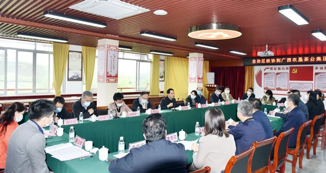 黄世勇表示,自治区政协将为农垦茶产业高质量发展助威助力,将认真研究吸收农垦茶业集团的意见建议,在今年“科技创新推动茶产业高质量发展”主题调研报告中,将农垦茶业集团提出的“推动全区茶业优质产业资源整合、推动优化完善茶业产业扶持政策、支持茶业科技创新工作”三个意见建议纳入调研报告,支持推动以农垦茶业集团等龙头企业为主体,整合区内优质茶业资源,组建广西大型龙头茶企,打造产业“航母”,提升广西茶业在全国的竞争力。自治区政协将密切关注、真诚关心农垦茶业发展,将农垦茶业发展过程中遇到的困难和问题及时反映给党委和政府,并发挥民主监督职责,督促相关扶持政策落实到位。同时,将通过各种渠道进一步宣传推介农垦茶业的良好形象。自治区农业农村厅和科技厅要分别从农业产业化发展和科技创新的角度大力支持农垦茶产业发展。相信在自治区党委、政府的坚强领导下,广西农垦事业将百尺竿头,再创辉煌。