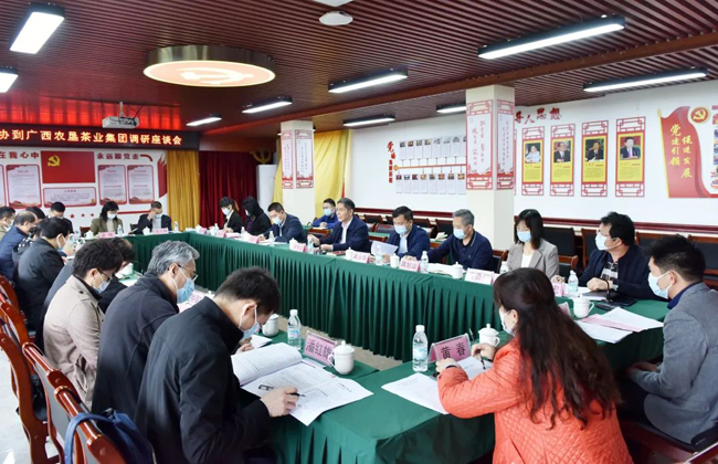 3月30日,自治区政协副主席黄世勇率队到广西农垦集团大明山茶园,就“加强科技创新,促进广西茶产业高质量发展”开展调研。农垦集团党委书记、董事长甘承会陪同并汇报农垦改革发展情况。