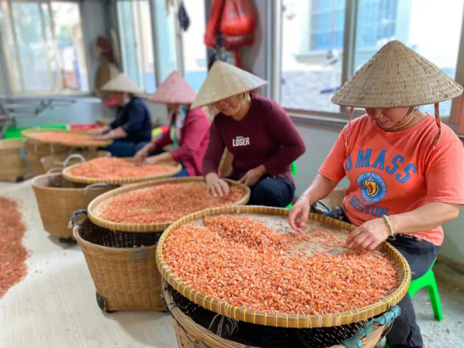 据悉,电建村是北海有名的“虾米第一村”,“电建虾米”品牌声名在外。村民加工的干虾米,大多以新鲜的明虾、麻虾、红虾等为原料。全村的虾米年产量约1000吨,产值约1亿元。