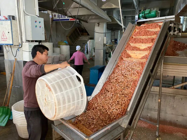 一些村民引入机械化加工制作虾米流水线