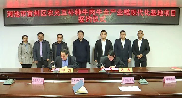 近日,宜州区举行农光互补种牛肉牛全产业链现代化基地项目签约仪式,正式与广西中投华农控股有限责任公司签约。