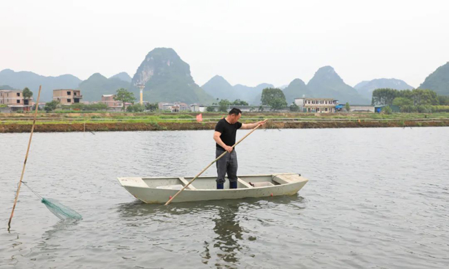 近日,在覃塘区黄练镇张团村富硒稻虾基地,技术员谢喻成和工友们凌晨2点多就开始起虾笼,直到早上7点才结束,1000多斤个头饱满的小龙虾分批装车,运往大岭乡基地进行分拣包装,最后销往各地订购的商家,走向市场。