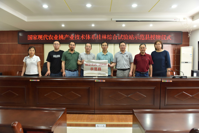 近日,国家现代农业桃产业技术体系示范县授牌仪式在灌阳县农业农村局举行。国家现代农业桃产业技术体系桂林综合试验站负责人及其成员,县农业农村局主要领导、分管领导以及有关站所负责人参加授牌仪式。