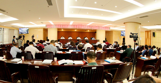 5月12日下午,2022年二季度农业经济运行部署暨现代农业产业招商工作视频会议在自治区农业农村厅召开。自治区政府副主席方春明在会上讲话,自治区政府副秘书长邝兵、梁磊,自治区党委农办主任、农业农村厅党组书记、乡村振兴局党组书记李宏庆,农业农村厅厅长、乡村振兴局局长黄智宇在主席台就座。