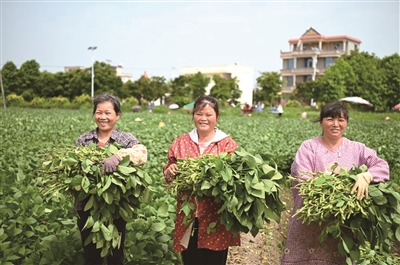 眼下正是毛豆收获的季节,大湾村的毛豆种植区域内,村民正在对毛豆进行采收、分拣、打包。大湾村村民高美华把家里的地租给别人种毛豆,平时夫妻俩还来基地打零工,贴补家用,“这么算下来,比自己种地收入高不少。”高美华给记者算了一笔账,“家里六亩地一年有3000块钱的租金,我们两夫妻在基地打工,一天有400块左右,早晚还可以在家里面照顾老人小孩,比在外面打工强!”村民吴锦意也是基地就业红利的受益者。往年都会外出打工的他,今年受疫情影响留在了家乡。得知村里的毛豆采收需要工人,便闻讯而来。他说:“在基地干活一天能赚200来块钱,不比在工厂差。”